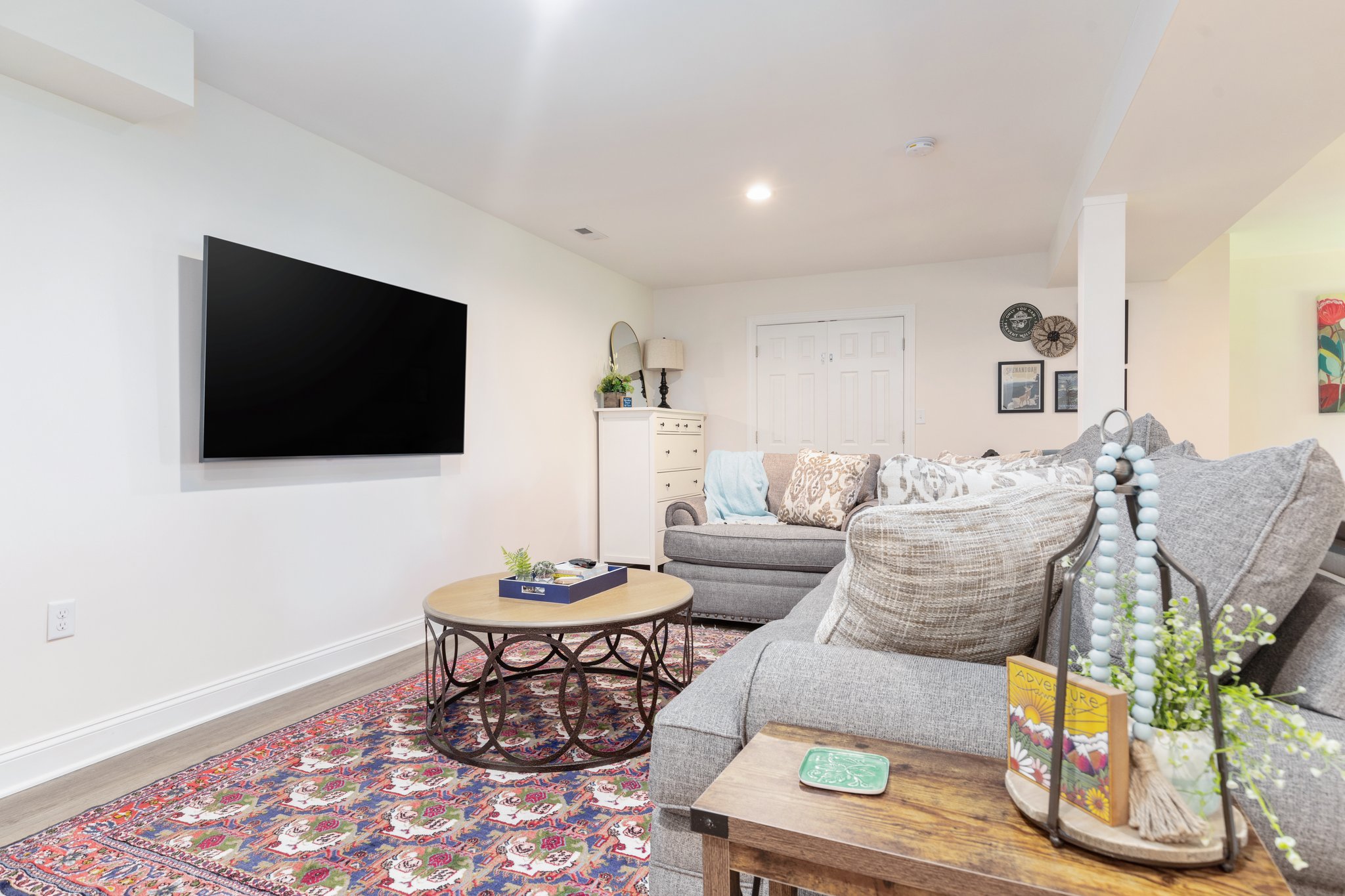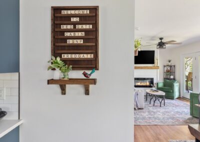 With respect to design, Red Gate Cabin features an open floor plan living room windows offering panoramic views of the Page Valley below and a finished walk-out basement. A full-size washer and dryer are located on the lower level for your convenience.